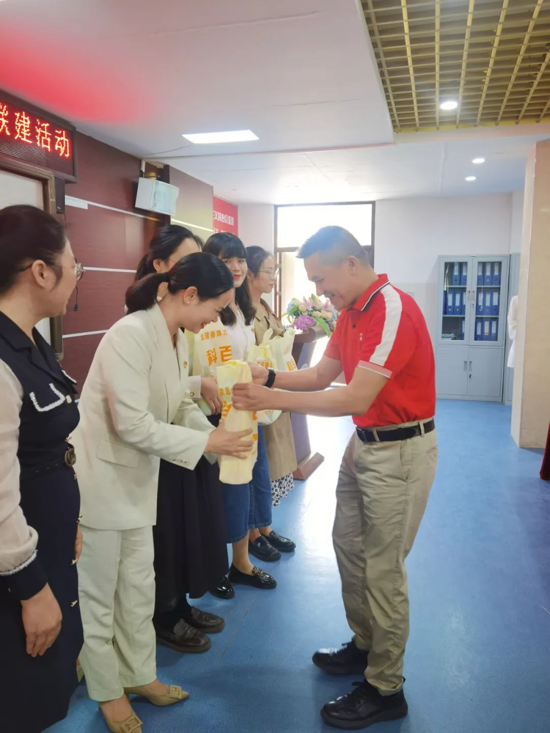 (和桂集團(tuán)黨支部書記周云為教師們送上禮品)