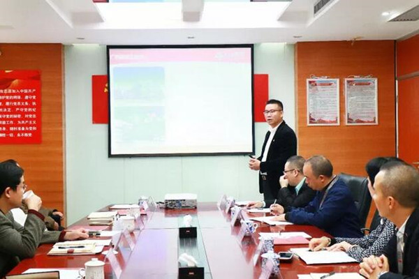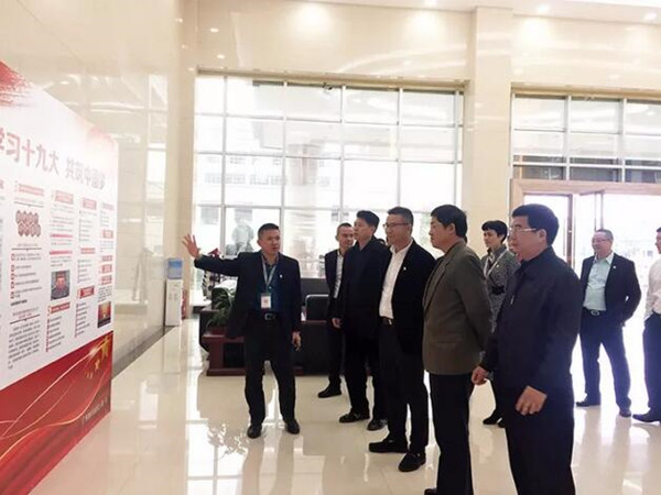 在調(diào)研過程中,黃偉文總裁向考察團詳細介紹了公司的發(fā)展戰(zhàn)略、經(jīng)營管理及公司未來發(fā)展規(guī)劃;趙紅明部長結(jié)合企業(yè)生產(chǎn)和發(fā)展實際,對十九大精神作了詳細解讀和全面深入宣講。趙紅明部長強調(diào),要有高度的認識,進一步貫徹學習十九大精神,把黨建融入企業(yè)管理,作為企業(yè)發(fā)展的重要正向引領(lǐng),注重發(fā)揮企業(yè)黨組織推動發(fā)展、促進和諧的作用。