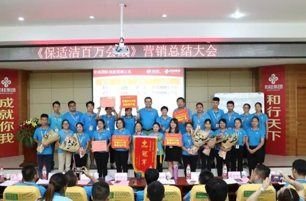 在8月14日的總結(jié)、頒獎(jiǎng)會(huì)上,和桂集團(tuán)總裁黃偉文對(duì)本次保適潔百萬會(huì)戰(zhàn)予以高度評(píng)價(jià),并為獲獎(jiǎng)團(tuán)隊(duì)、個(gè)人進(jìn)行頒獎(jiǎng)。第二組輝煌隊(duì),助教汪翠珍,組長蔣麗蓉,組員楊毅獲得個(gè)人內(nèi)購單產(chǎn)排名第一,團(tuán)隊(duì)以舍我其誰的氣勢,力壓群雄,勇奪會(huì)戰(zhàn)團(tuán)隊(duì)冠軍。