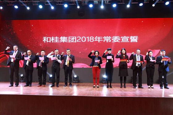 黃總在會上進行2018年人事任命通報,下達目標責任狀,和桂集團常委班子帶領業(yè)務團隊上臺宣誓?,F(xiàn)場氛圍瞬間被點燃,在場的和桂家人們斗志昂揚,軍令如山,使命必達,戰(zhàn)之必勝!