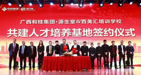 本次感恩家宴特設與南寧百美匯美容美發(fā)彩妝職業(yè)培訓學校 “共建人才培養(yǎng)基地”合作簽約儀式,此次簽約標志著雙方建立了長期穩(wěn)定的戰(zhàn)略合作關系。據(jù)悉,集團公司將與該校共建“和桂集團人才培養(yǎng)基地”、“源生堂天然養(yǎng)發(fā)共建創(chuàng)業(yè)班”,委托該校進行養(yǎng)彩妝護膚及頭發(fā)養(yǎng)護等人才定向培養(yǎng)與專業(yè)技術輸出。百美匯學?,F(xiàn)開設美發(fā)、美容、彩妝、美甲、紋繡等專業(yè),上百個班級,全部是社會熱門專業(yè),滿足不同層次的培訓需求。
