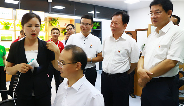在調(diào)研集團(tuán)公司源生堂生發(fā)、養(yǎng)發(fā)項(xiàng)目時(shí),黃總向徐部長(zhǎng)介紹所有的源生堂產(chǎn)品都是公司自主研發(fā),每一款都有專(zhuān)利技術(shù)。徐部長(zhǎng)認(rèn)為源生堂生發(fā)養(yǎng)發(fā)屬于大健康產(chǎn)業(yè),更是健康生活的一部分;他指出:面對(duì)不斷變化的經(jīng)濟(jì)發(fā)展形勢(shì),希望和桂集團(tuán)要進(jìn)一步增強(qiáng)發(fā)展信心,增強(qiáng)品牌意識(shí),加大自主創(chuàng)新力度,增強(qiáng)產(chǎn)品的文化深度,提升品牌形象,把企業(yè)做優(yōu)做大做強(qiáng)。
