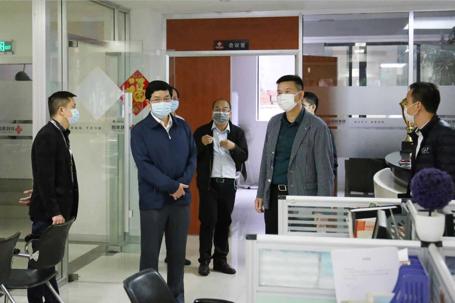 趙紅明部長充分肯定了和桂集團(tuán)為抗擊疫情與積極復(fù)工復(fù)產(chǎn)作出的努力和貢獻(xiàn)。并傳達(dá)了市委、市政府對應(yīng)對疫情、支持企業(yè)共渡難關(guān)等相關(guān)暖企政策作了詳細(xì)解讀。同時表示,和桂集團(tuán)帶頭維護(hù)正常經(jīng)濟(jì)秩序,為打贏疫情防控阻擊戰(zhàn)和保持國民經(jīng)濟(jì)平穩(wěn)運(yùn)行貢獻(xiàn)了巨大的力量、提供了有力的支撐。希望和桂集團(tuán)進(jìn)一步堅(jiān)定信心,打好疫情防疫戰(zhàn)、復(fù)工復(fù)產(chǎn)攻堅(jiān)戰(zhàn),嚴(yán)防疫、穩(wěn)復(fù)產(chǎn),統(tǒng)戰(zhàn)部、工商聯(lián)將發(fā)揮好橋梁紐帶作用,積極與企業(yè)溝通對接,協(xié)同有關(guān)部門及時幫助企業(yè)解決遇到的困難和問題,努力為企業(yè)提供服務(wù)保障,當(dāng)好企業(yè)的堅(jiān)強(qiáng)后盾。