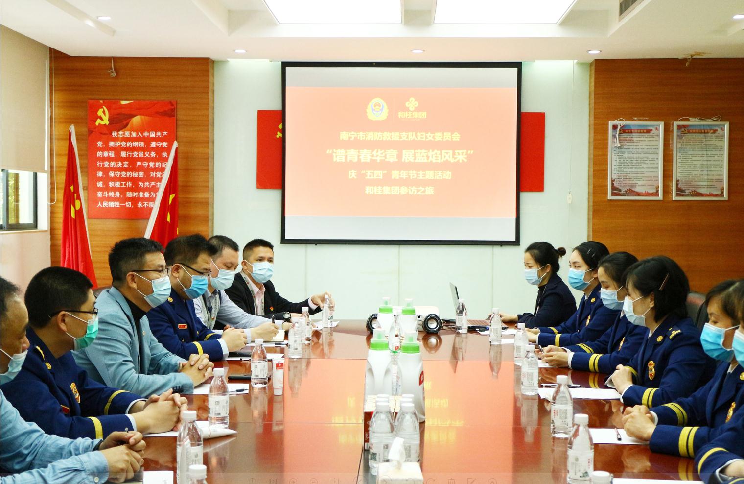 4月26日,南寧市消防救援支隊(duì)婦女委員會(huì)主任、戰(zhàn)勤保障處處長莫曉漪一行參訪和桂集團(tuán),舉行“譜青春華章·展藍(lán)焰風(fēng)采”·慶“五四”青年節(jié)主題活動(dòng)。和桂集團(tuán)總裁黃偉文,攜集團(tuán)高管進(jìn)行了接待。南寧市消防救援支隊(duì)婦女委員會(huì)副主任、青秀區(qū)消防救援大隊(duì)政治教導(dǎo)員劉曉玫,經(jīng)開區(qū)消防救援大隊(duì)詹寧大隊(duì)長、經(jīng)開區(qū)消防救援大隊(duì)政治教導(dǎo)員張濱成陪同參訪。