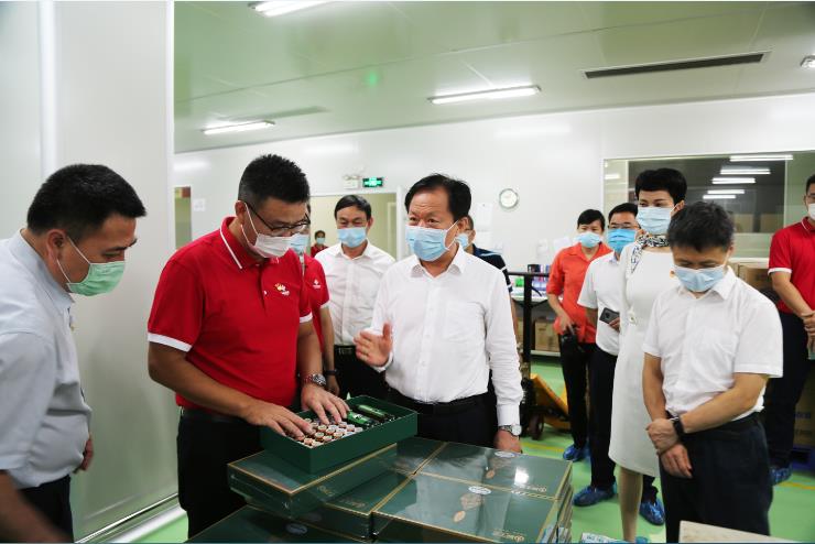 徐紹川部長一行在黃總的帶領(lǐng)下深入和桂集團(tuán)各子公司辦公區(qū)、工廠、文化展廳進(jìn)行調(diào)研。在工廠車間調(diào)研時,徐紹川部長指出,和桂源生堂充分挖掘廣西中草藥資源,發(fā)展民族本草養(yǎng)發(fā),服務(wù)大眾健康,打造廣西品牌,已經(jīng)取得了一定的品牌基礎(chǔ),企業(yè)要加大宣傳,加強(qiáng)精準(zhǔn)營銷,推廣方式方法上也要創(chuàng)新,運(yùn)用新媒體,線上線下相結(jié)合,好產(chǎn)品要讓更多人知道、用到,讓廣西的好產(chǎn)品真正走進(jìn)千家萬戶。