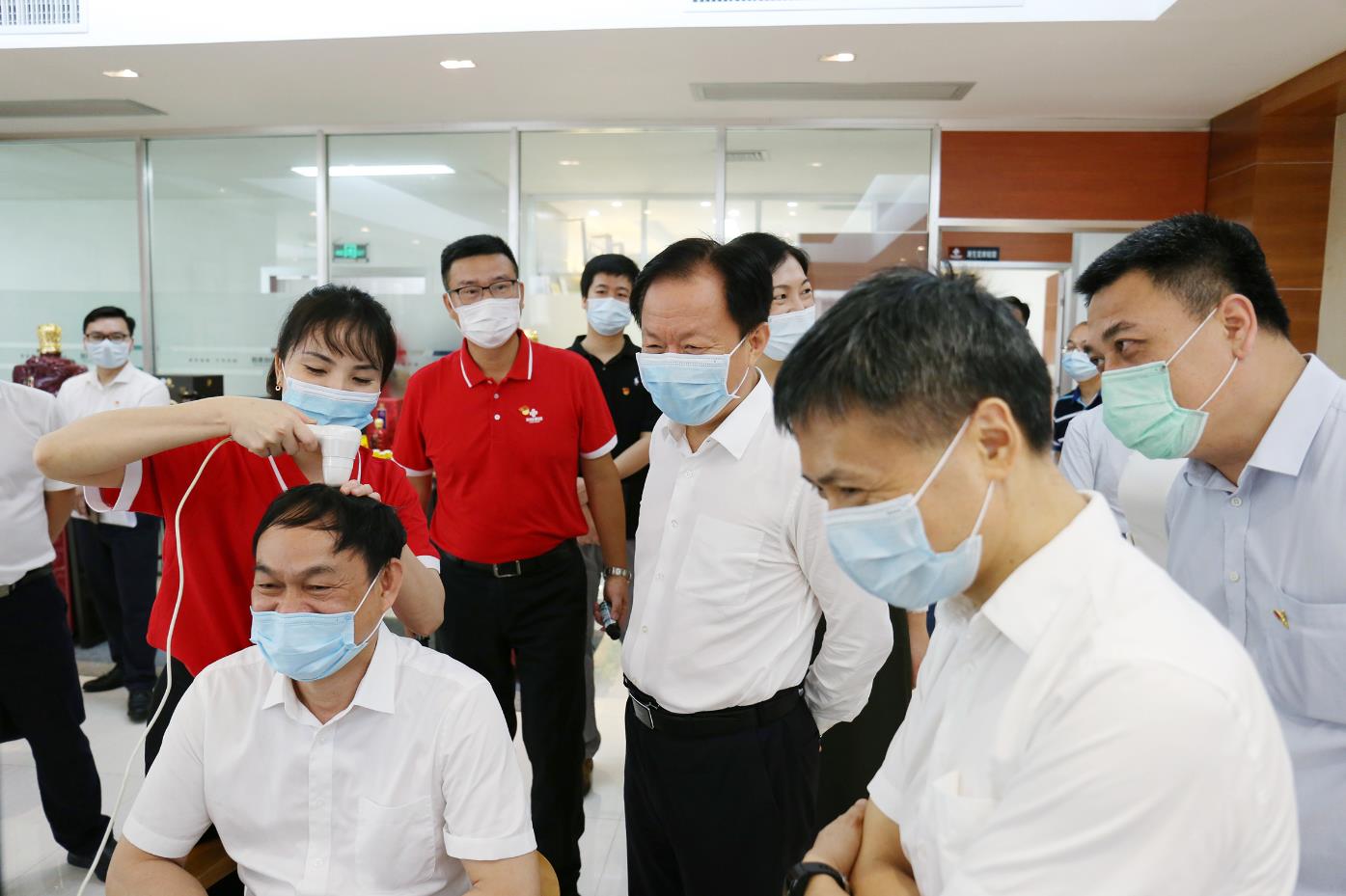 在文化展廳,徐紹川部長參觀體驗(yàn)了源生堂自有專利頭皮健康檢測儀,表示和桂源生堂在科技創(chuàng)新方面已經(jīng)邁出了堅(jiān)實(shí)的一步,希望企業(yè)要加強(qiáng)自主知識產(chǎn)權(quán)的研發(fā)和保護(hù),不斷加大科研力度,以科技創(chuàng)新驅(qū)動企業(yè)更快更好發(fā)展。