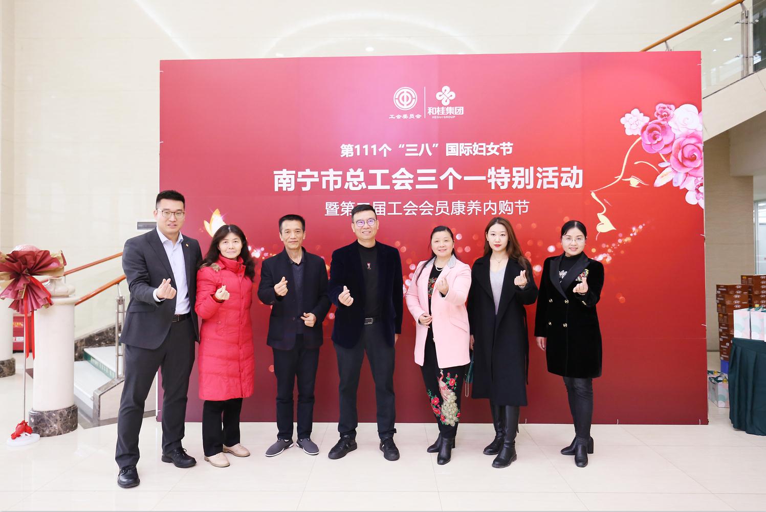 在第111個(gè)“三八”國(guó)際婦女節(jié)到來(lái)之際,為進(jìn)一步激發(fā)全市女職工愛(ài)崗敬業(yè)、銳意進(jìn)取的工作熱情,充分發(fā)揮“半邊天”的作用,3月5日,南寧市總工會(huì)走進(jìn)和桂集團(tuán),開(kāi)展“三個(gè)一”特別活動(dòng),通過(guò)“一場(chǎng)權(quán)益講座”“一場(chǎng)康養(yǎng)講座”“一個(gè)內(nèi)購(gòu)節(jié)”,與南寧市基層工會(huì)的女職工共慶節(jié)日,致敬了不起的綠城巾幗!