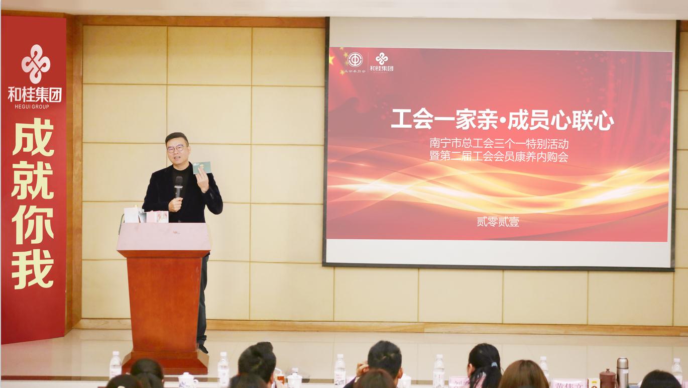 和桂集團(tuán)總裁黃偉文表示,和桂集團(tuán)在供應(yīng)鏈和康養(yǎng)領(lǐng)域具有領(lǐng)先優(yōu)勢(shì),在南寧市總工會(huì)的指導(dǎo)下,集團(tuán)工會(huì)積極創(chuàng)新,服務(wù)得到很大提升。希望與各級(jí)工會(huì)系統(tǒng)加強(qiáng)交流合作,普惠職工,讓廣大職工享受到健康的生活方式,在個(gè)人及家庭日常消費(fèi)上也能享受到真正的實(shí)惠。