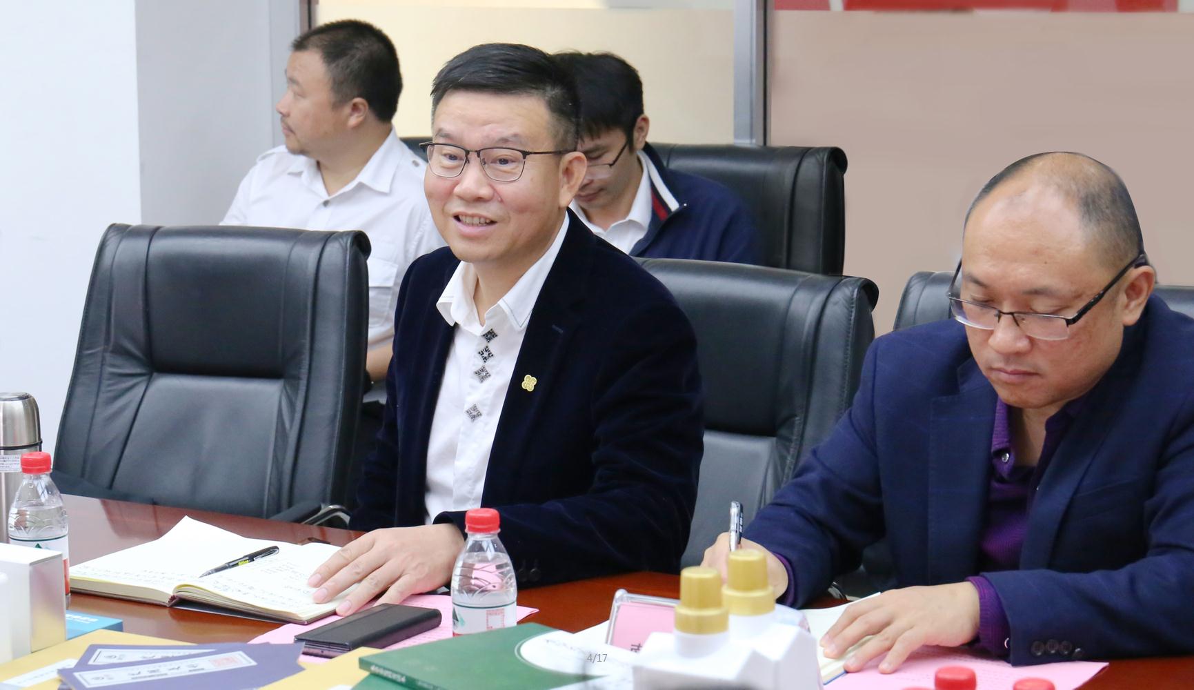(前左一)和桂集團董事長黃偉文分享學(xué)習(xí)心得