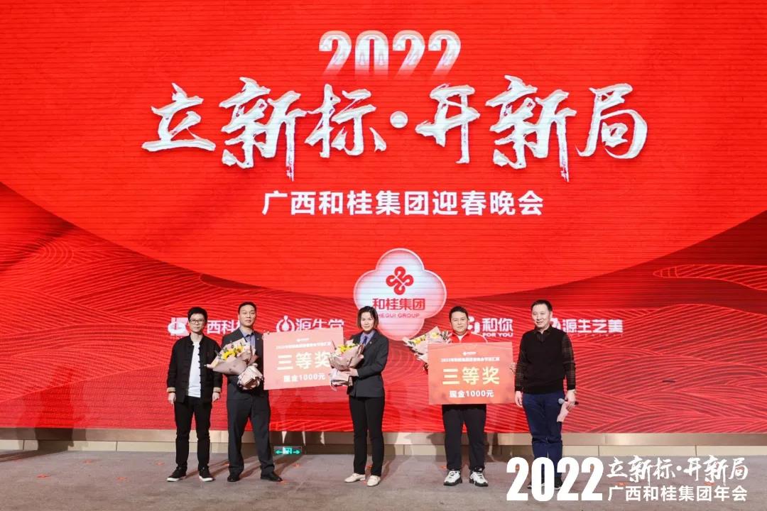 最后,由科桂商超+百色表演的節(jié)目,榮獲節(jié)目匯演一等獎(jiǎng)。由科桂食品+財(cái)務(wù)+物流、和桂源生堂公司表演的節(jié)目,榮獲節(jié)目匯演二等獎(jiǎng)。由和桂本部、和你公司表演的節(jié)目,榮獲節(jié)目匯演三等獎(jiǎng)。