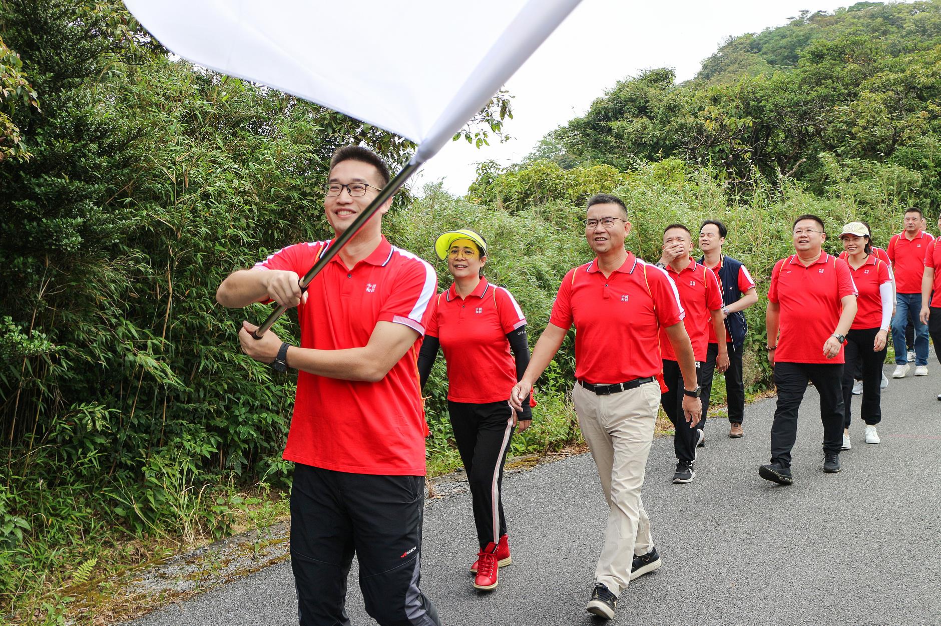 隨著隊(duì)伍行進(jìn),山路越來(lái)越陡,日照越來(lái)越強(qiáng)烈,更加激發(fā)了大家“不登山頂誓不罷休”的斗志,一路攀登一路笑語(yǔ),既鍛煉了身體,又舒緩了身心。