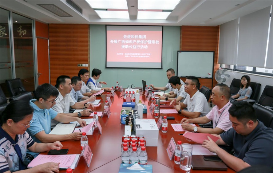 8月12日,自治區(qū)市場(chǎng)監(jiān)督管理局知識(shí)產(chǎn)權(quán)保護(hù)處處長(zhǎng)梁濤一行蒞臨和桂集團(tuán)開展調(diào)研。南寧市市場(chǎng)監(jiān)督管理局副局長(zhǎng)謝義平、自治區(qū)市場(chǎng)監(jiān)督管理局知識(shí)產(chǎn)權(quán)保護(hù)處一級(jí)主任科員張文軍、中國(廣西)知識(shí)產(chǎn)權(quán)維權(quán)援助中心維權(quán)援助部部長(zhǎng)謝玲玲攜知識(shí)產(chǎn)權(quán)專家組陪同調(diào)研。專家組重點(diǎn)了解企業(yè)發(fā)展現(xiàn)狀以及相關(guān)商標(biāo)專利等知識(shí)產(chǎn)權(quán)情況。和桂集團(tuán)董事長(zhǎng)黃偉文攜集團(tuán)高管熱情接待。