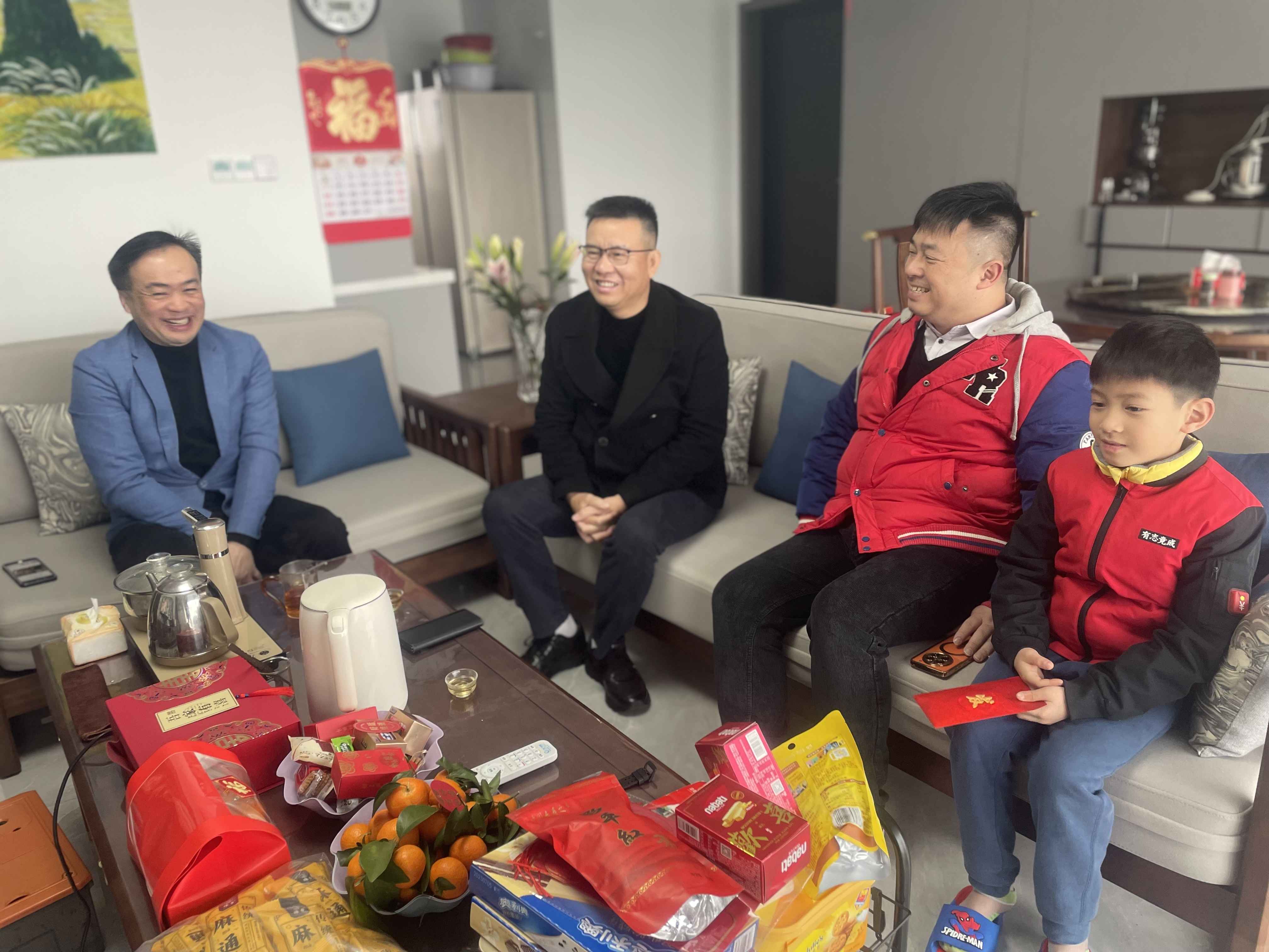 在新春佳節(jié)到來之際,廣西和桂集團董事長黃偉文,攜各公司負(fù)責(zé)人來到員工家中開展家訪慰問活動,將公司的關(guān)懷與溫暖送到員工家中,并致以新年的祝福。
