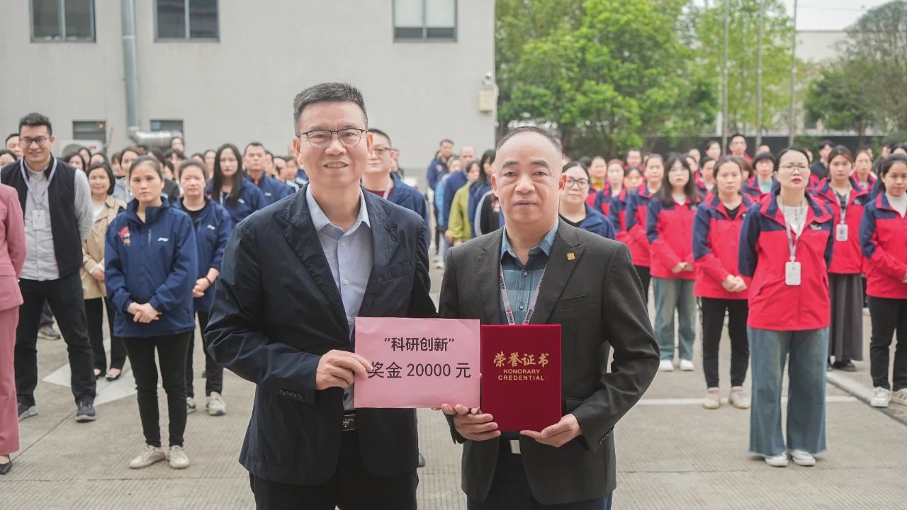 4月7日,和桂集團(tuán)在周一集團(tuán)晨會上舉行了科技創(chuàng)新表彰儀式,在全體員工的共同見證下,集團(tuán)董事長黃偉文為集團(tuán)副總裁楊天云頒發(fā)創(chuàng)新榮譽(yù)證書及獎金,表彰其團(tuán)隊(duì)在科研中作出的突出貢獻(xiàn)。