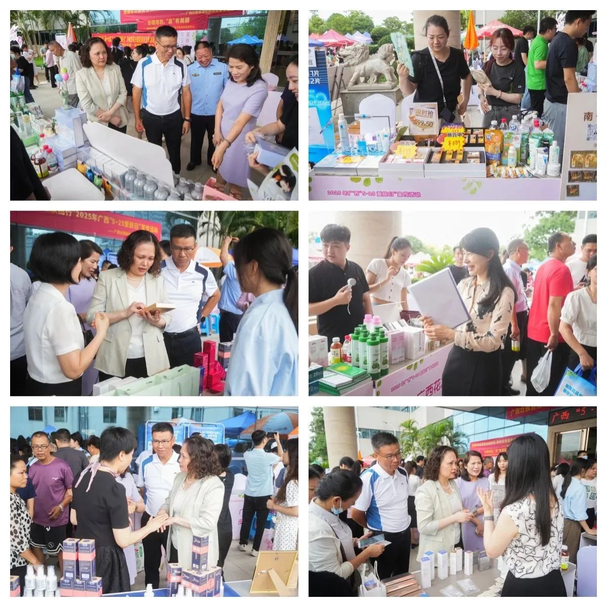 自治區(qū)藥監(jiān)局、南寧市市場監(jiān)管局等單位通過展板、假劣化妝品展示、現(xiàn)場檢測演示等形式普及法規(guī)與安全知識。